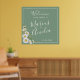 Pretty wedding design features watercolor white daisies corner on basil green background with white customizable text blocks in modern fonts