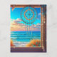 Beautiful dreamcatcher hanging in a window that overlooks the blue waves ocean beach.