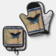 Pretty Black and Blue Butterfly Oven Mitt & Pot Holder Set