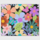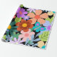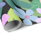 With this adorable and whimsical wrapping paper, you may present your gifts in a unique and colorful way. The pattern includes vivid leaves, butterflies, and flowers in shades of orange, pink, purple, and yellow on a black background.