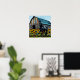 Pretty Black Horse and Rustic Barn with Sunflowers Poster
