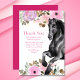 Pretty Black Horse with Pink Flowers Birthday Thank You Card