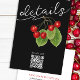 This chic double-sided wedding enclosure card features a vintage botanical illustration of vibrant red cherries with green leaves, elegantly hanging above the word "Details" in stylish white calligraphy, all set against a sleek black background. A modern black-and-white QR code allows guests to easily access your wedding website or digital marketing tools. The reverse side showcases elegant black and red script on a clean white backdrop. Fully customizable, you can replace text and QR codes with your own details. Perfect for a rustic outdoor wedding, explore our Cherry Wedding Collection for matching products to complete your theme.