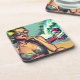 Pretty Blonde Retro Woman and Surfer Guy Beverage Coaster