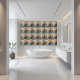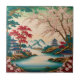 This pretty tile brings a peaceful Asian garden right to your home. You'll see lovely pagodas, trees full of red and pink flowers, and soft mountains in the background. It's a simple yet beautiful design that can add a special touch to your kitchen walls, bathroom, or anywhere you want a bit of calm and color.