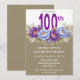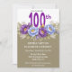 Pretty Blue and Purple Peony 100th Birthday Invitation