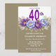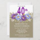 Pretty Blue and Purple Peony 40th Birthday Invitation