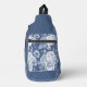 PRETTY BLUE AND WHITE HAND DRAWN FLOWERS SLING BAG