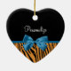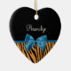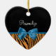 Pretty Blue Bow Stylish Tiger Stripes and Name Ceramic Ornament