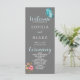 With the majority of the program printed in a simple white font, the words "Welcome," "Ceremony," "Bridal Party," and the word "and" between the couples names are printed in a beautiful decorative blue script font that perfectly complements the colors of the butterfly.