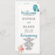 The majority of the program is in a classic white color, making the butterfly and flowers stand out even more. The front of the program displays the couples names, date, location, and ceremony events. On the back, you'll find a list of the bridal party. The program is designed with a simple black font, except for the words Welcome, Ceremony, Bridal Party, and the word "and" between the couples names which are in a decorative blue script font to complement the coloring of the butterfly.