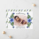Pretty Blue Floral Oval Frame Photo Birth Announcement
