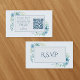 This small wedding RSVP card features beautiful blue floral watercolor artwork paired with elegant typography, creating a refined botanical wedding element perfect for sophisticated celebrations. The front showcases a classic “R.S.V.P” design rendered in a classic deep blue color palette, while the back includes a seamless qr code rsvp insert with easy reply instructions. Surrounded by a soft green floral frame accent and complemented by a gentle pastel color scheme, this elegant blue r.s.v.p enclosure card coordinates perfectly with the full blue floral wedding suite. The clean simple design layout ensures clarity and style, making it an essential detail in your garden wedding event details.