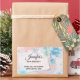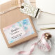 Birthday thank you stickers with beautiful blue flowers on a pink background. An image of a rectangle shaped notebook page layered over top for you to write your text inside.