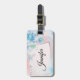 Pretty Blue Flowers on Pink Background Luggage Tag