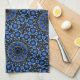 Pretty Blue & Gold Dot Art Floral Pattern Kitchen Towel