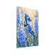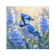 A beautiful bird themed metal wall art. Front has an ai illustration of a pretty Blue Jay sitting on a lilac branch.