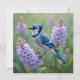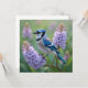 A pretty blank card with a blue jay sitting on a lilac branches ai illustration.