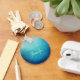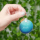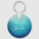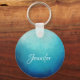 A keychain with a pretty blue half mandala pattern with a background gradient color of light sea blue transitioning into a dark navy blue.