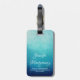 Luggage tag with a pretty blue half mandala pattern with a background gradient color of light sea blue transitioning into a dark navy blue.