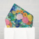 This design features a hand-painted watercolor garden floral theme with a girly boho chic style. The elegant teal green and golden foliage botanical artwork is filled with a variety of colors including blush, peach pink, bubblegum pink, yellow, red, orange, and white flowers. The dreamy romantic spring floral and flower buttons design is set against a classic blue background that is on-trend. This unique and feminine pattern has a vintage feel and is perfect for everyday wear, home decor, celebrations, and special events.