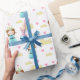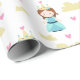 Adorable wrapping paper for first birthday girls. The pattern has a princess in blue dress with clouds and pink hearts around. Great for Baby showers, birthdays, or any other celebration for the little girl. Illustrated and designed by Patricia Alvarez.