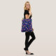 Pretty personalized tote bag with a feminine floral pattern on a dark blue background.