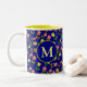 Pretty Blue Rose Pattern Monogram Two-Tone Coffee Mug