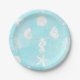 These pretty blue and teal beach themed paper plates have a design of seahorses, sand dollars, seashells and coral on them. Perfect for a beach themed wedding or baby shower.