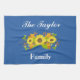 A pretty kitchen towel, this design features a blue background with your family name written in cursive lettering and a sunflower in the cente. Underneath is "Family". Makes a great gift for a loved one. Order yours today!
