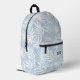 Pretty Blue & White Leaf Pattern Monogram Initials Printed Backpack
