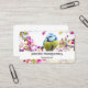 Business cards with an amazing photograph of the cutest little bird perched on a branch covered in pink blossoms and green leaves. The bird has a blue head and yellow body with a very sweet face. Adorable.