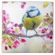 Ceramic tile with an amazing photograph of the cutest little bird perched on a branch covered in pink blossoms and green leaves. The bird has a blue head and yellow body with a very sweet face. Adorable.