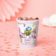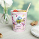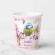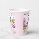 Paper cups with an amazing photograph of the cutest little bird perched on a branch covered in pink blossoms and green leaves. The bird has a blue head and yellow body with a very sweet face. Adorable.