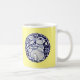 My original, copyrighted blue and white mom and baby bunny ceramic artwork strikes a cheery note on a pretty yellow mug. Perfect gift for Mother's Day, Easter, or if you just love blue and yellow!