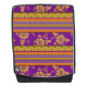 Stylish backpack with boho chic inspired purple & mustard yellow pattern.