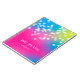 Colorful gradient blend pretty bright fuchsia pink, blue with a hint of yellow-green, with falling bokeh sparkles in white. Personalize with your name or initials in white font lettering.