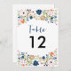 Pretty Bouquet Wedding Table Number Invite Navy