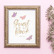 This pretty guest book baby shower sign features a simple design of fluttering butterflies around stylish typography. A color scheme of pastel pink, purple, and faux gold foil create an elegant look.