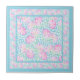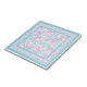 A square Ceramic Tile, with a pattern of pink roses on a sky blue background, dotted with white butterflies. Add a wooden frame to make a useful and decorative trivet!