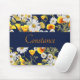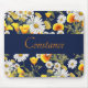 Pretty chamomile and poppies floral pattern on navy blue background with text band. Customize this mousepad with name or other special message.