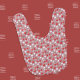 A cute red berry bib with the pattern of red cherry and white little flowers .