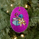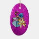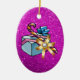 Beautiful Double-Sided Oval Christmas Ornament Featuring Pretty Christmas Present & Pink Faux Glitter Design - Gold Bow Design on the Back