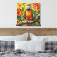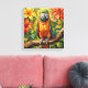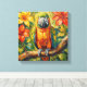 Pretty Colorful Impasto Parrot and Tropical Flower Canvas Print