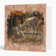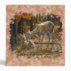 A whitetail doe fondly nuzzles her six month old fawn lying in a soft bed of autumn leaves. Fall colors are everywhere in the maple trees of the surrounding forest, giving the scene a warm and cozy orange glow. Realistic artwork created from an original oil painting by equine and wildlife artist Crista S. Forest.