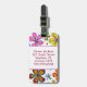 Big flowers art design luggage tag. Original artwork design of big flowers in bright colors on both sides. Template text is dark reddish pink on white and is vertical for easy viewing.