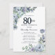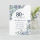 Pretty Dusty Blue Floral 80th Birthday Invitation