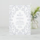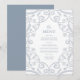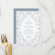 Flat 5x7" wedding menu that feels royal, romantic and elegant with a pop of soft silver glitter, floral lace frame design with leaves, and dusty blue. Perfect for Winter seasons, as well as all year round.