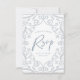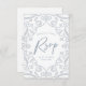 Pair your wedding cards with these pretty RSVP cards featuring with a pop of soft silver glitter, floral lace frame design with leaves, and dusty blue typography. Perfect for Winter seasons, as well as all year round.