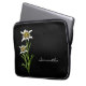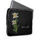 Elegant zippered laptop case done in black, with lovely graphics of the white alpine flower Edelweiss. Custom white script text is ready to personalize for yourself or as a great gift idea.